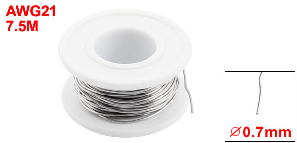 Details7.5M Length AWG21 0.7mm Diameter Nichrome Resistor Wire for Kiln Furnace  Product Name Resistance Wire Material Nichrome Average Wire Diameter 0.7mm Wire Gauge AWG21 Wire Length 7.5M/25ft Resistance 2.832Ohm/M Maximum Operating Temp 1400°C(2550°F) Roll Size 32 x 16mm/ 1.2" x 0.63"(D*W) Total Size 42 x 20mm/1.7" x 0.8"(D*H) Color Silver Tone Net Weight 33g Package Content 1 x Resistance Wire