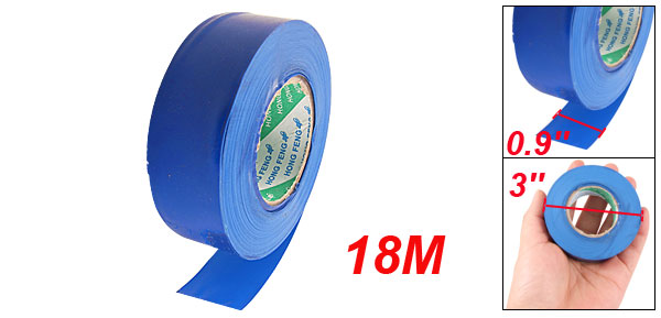 Product Name Insulation Tape Tape Width 23mm/0.9'' Tape Thickness 16mm/0.6'' Tape Length 18M/59ft Overall Diameter 75mm/3'' Material PVC Color Royal Blue Weight 110g Package Content 1 x Insulation Tape - Reviews