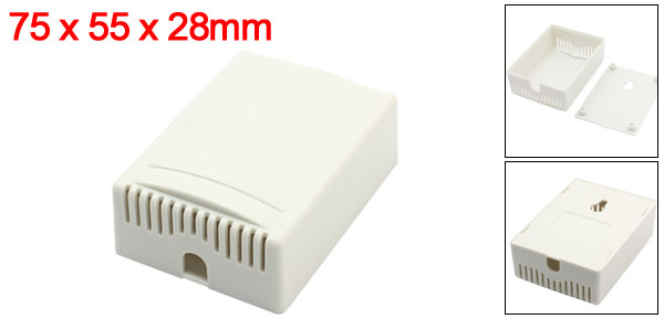 Product Name Waterproof Junction Box for Wireless Remote Control Receiver External Size 75 x 55 x 28mm/3" x 2.2" x 1.1"(L*W*H) Internal Size 70 x 50 x 25mm/2.8" x 2" x 1"(L*W*H) Outlet Wire Diameter 8mm/0.31" Material Plastic Color Light Gray Net Weight 23g Package 1 x Junction Box - Reviews