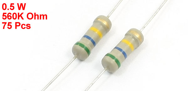 75Pcs 0.5W 560K Ohm Axial Lead 4 Color Ring Carbon Film Fixed Resistor
