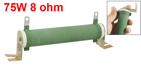 Details75W 8 ohm 5% Tubular Wire Wound Resistor 75 Watt 8R  Product Name Wire Wound Resistor Rated Power 75W Resistance 8 ohm Resistance Tolerance ±5% (J) Type Fixed Type Material Metal, Ceramic Installing Size Install Spacing Pitch: 6.47mm / 0.25" Install Hole Diameter: 4.96mm / 0.2" Tube Diameter 28mm / 1.1" Total Size 20 x 2.8 x 6.7cm / 7.9" x 1.1" x 2.6"(L * W * H) Color As Picture Shown Weight 161g Package Content 1 x Wire Wound Resistor