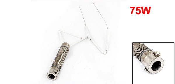 Product Name Heating Element Core Main Material Metal Power 75W Dimension 7 x 1.5cm/ 2.8" x 0.6"(L*Max.D) Wire Length 21cm/ 8.3" Color White, Silver Tone Weight 25g Package Content 1 x Soldering Iron Heating Element Cores - Reviews