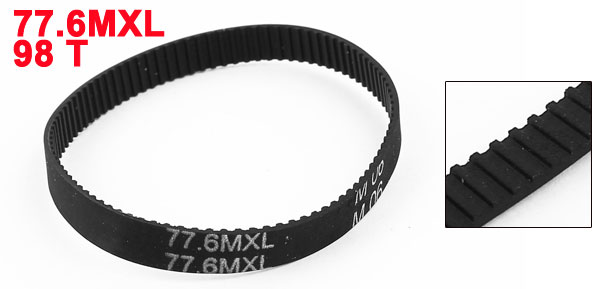 Product Name Timing Belt Model 77.6MXL Number of Teeth 98 Code Number 025 Teeth Pitch 2.032mm / 0.08" Belt Width 6.4mm / 0.25" Pitch Length 199.14mm/ 7.8" Material Rubber Color Black Weight 3g Package Content 1 x Timing Belt - Reviews