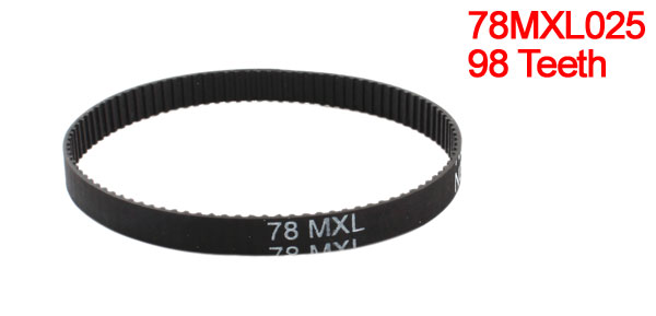 Details78MXL025 98 Teeth 2.032mm Pitch 1/4" Width Black Groove Timing Belt 199.14mm  Product Name Timing Belt Model 78MXL025 Number of Teeth 98 Pitch 2.032mm / 0.08" Belt Width 6.4mm / 0.25"(1/4") Pitch Line Length 199.14mm/7.8" Material Rubber Color Black Weight 3g Package Content 1 x Timing Belt
