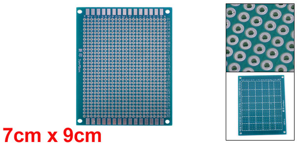 Product Name Universal PCB Board Hole Diameter 1 mm / 0.039" Hole Pitch 2.54 mm / 0.1" Each Board Size 7 x 9 cm / 2.7" x 3.5" (L*W) Thickness 1.6 mm / 0.063" Material FR-4 Color Silver Tone, Teal Green Weight 18g Package Content 1 x Universal PCB Board - Reviews