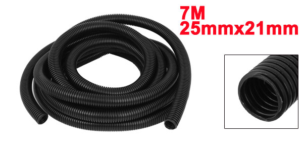 7m 23ft Long Black Nylon Corrugated Conduit Wire Tubing Hose Tube 25mm Diameter