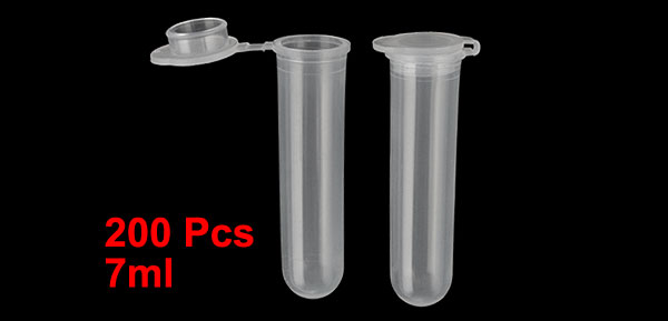 Details7ml Plastic Round Bottom Micro Centrifuge Tubes w Flip Caps 200 Pcs  Product Name Centrifuge Tube Material Plastic Capacity 7ml/0.5oz Overall Size (Approx.) 17 x 62mm/ 0.67" x 2.4" (D*L) Color Clear White Net Weight 545g Package Content 200 (±2%) x Centrifuge Tube