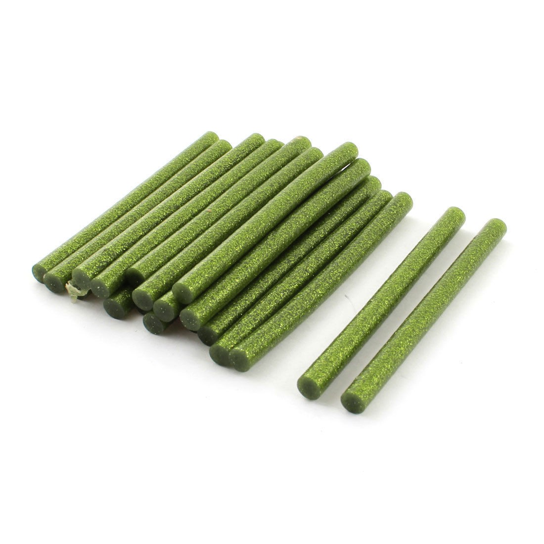 7mm Dia 100mm Length Light Green Glitter Hot Melt Glue Adhesive Stick 20Pcs