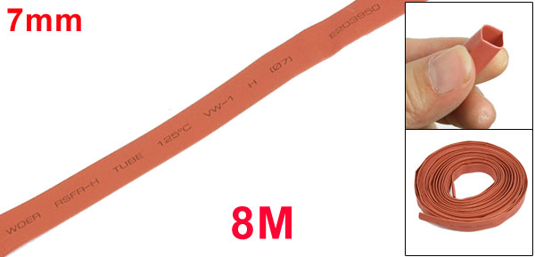 7mm Dia. Heat Shrinkable Tube Shrink Tubing 8M 26.2FT Red