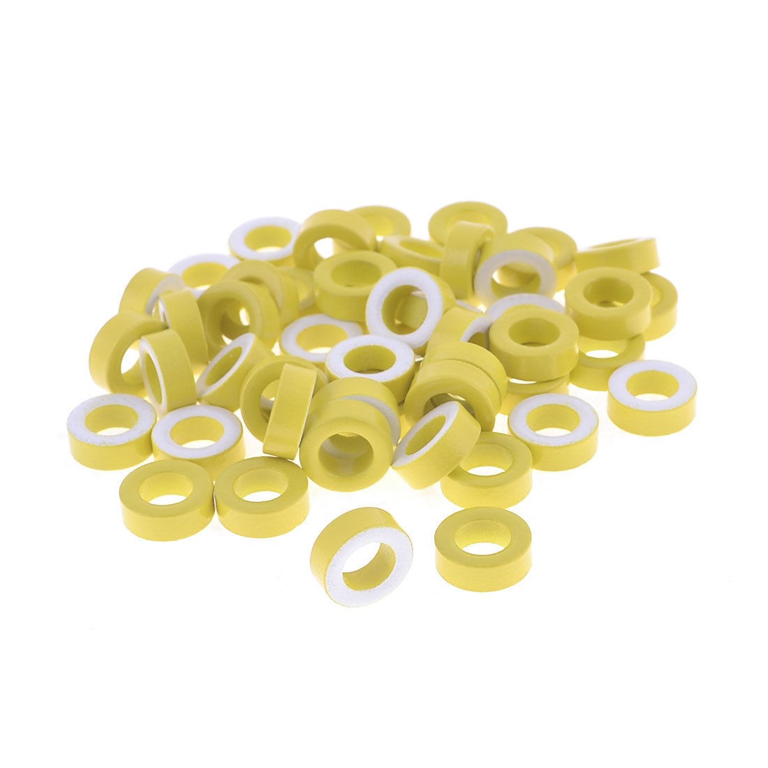 7mm Inner Diameter Ferrite Ring Iron Toroid Cores Yellow White 50PCS