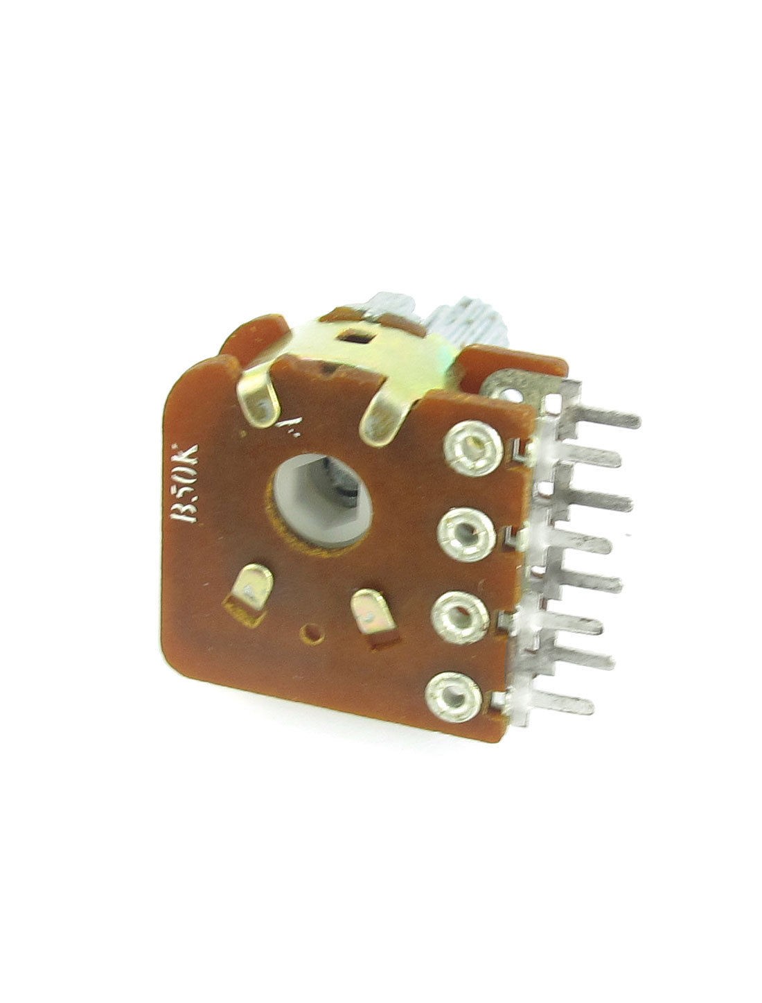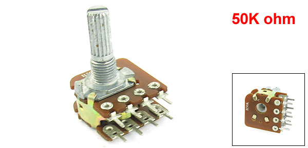 Product Name Potentiometer Type B50K Resistance Value 50K ohm Adjustment Type Top Adjustment Type Linear Dual(Type B) Features Knurled Shaft Pin Number 8 Shaft Size 6 x 13mm /0.24" x 0.51"(D*L) Mounting Thread Diameter 7mm / 0.28" Base Size 21 x 22 x 9mm / 0.83"x 0.87" x 0.35" Total Length 31mm / 1.2" Material Metal, Electronic Parts Weight 8g Package 1 x Potentiometers - Reviews