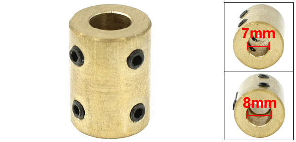 Product Name Motor Wheel Coupling Bore 7mm / 7/25", 8mm/ 5/16" Overall Size 16 x 22mm / 0.63" x 0.86"(D*L) Material Metal Color Gold Tone Net Weight 30g Package Content 1 x Motor Wheel Coupling - Reviews