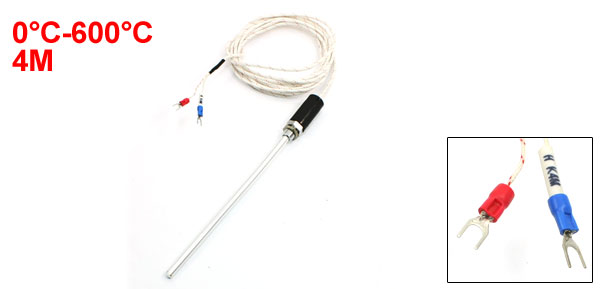 Product Name Thermocouple Probe Type K Type Fork Pin Number 2 Temperature Range 0°C-600°C Sensor Size 7 x 200mm/ 0.28" x 7.9" (D*L) Mounting Thread Dia 12mm/0.47" External Shield Material Nylon Cable Length(Approx.) 4M / 13Ft Weight 96g Package Content 1 x Thermocouple Probe - Reviews