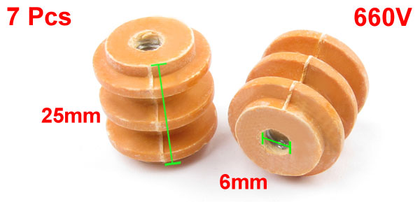 Product Name Busbar Insulator Main Material Dough Molding Compound Unsaturated Resin Withstanding Voltage 660V Main Color Orange Female Thread Dia 6mm/ 15/64" Size 25 x 23mm/ 1" x 0.9"(H*D) Total Weight 107g Package Content 7 x Busbar Insulator - Reviews