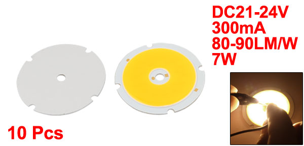 Product Name COB LED Lamp Beads Rated Voltage DC21-24V Luminous Flux 80-90LM/W Color Temperature 2800-3000K Power 7W Current 300mA Light Color Warm White Material Aluminum Color Silver Tone, Yellow Diameter 50mm/ 2" Luminous Surface 40mm/ 1.6"(Diameter) Weight 71g Package Content 10 x COB LED Lamp Beads - Reviews