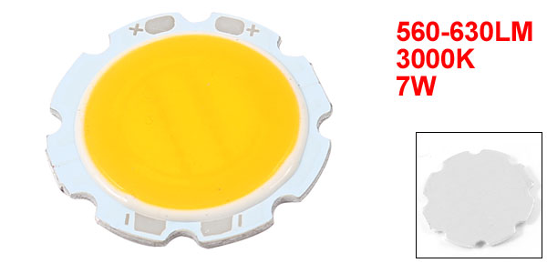 Product Name COB LED Light Rated Voltage 10-12V Luminous Flux 560-630LM Color Temperature 3000K Power 7W Work Current 700mA Material Plastic, Aluminum Total Emitters 1 Color White, Orange Size 28 x 2mm/ 1.1" x 0.08" (D*T) Light Color Warm White Weight 3g Package Content 1 x COB LED Light - Reviews
