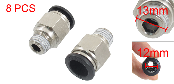 8 Pcs 1/2" PT Male Thread 12mm Push In Joint Pneumatic Connector Quick Fittings