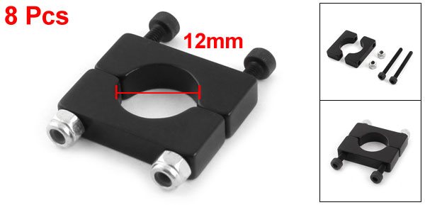 8 Pcs 12mm Dia Black Aluminum Clamp Clip for Carbon Fiber Tube RC Multirotor