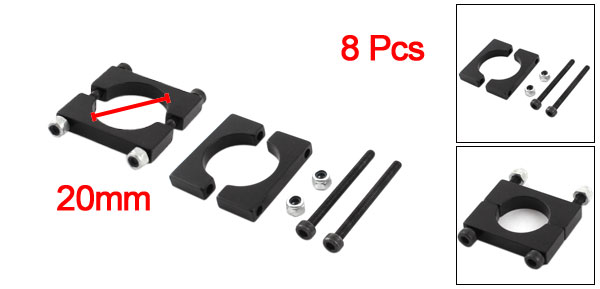 Product Name Aluminum Clamp for Pipe Dia 20mm/0.8" Dimension 32 x 26 x 5mm/ 1.3" x 1" x 0.2"(L*W*T) Material Aluminum Main Color Black Net Weight 91g Package Content 8 Pcs x Aluminum Clamp - Reviews