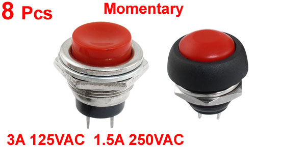 8 Pcs 3A 125V 1.5A 250VAC SPST Round Red Momentary Pushbutton Switch