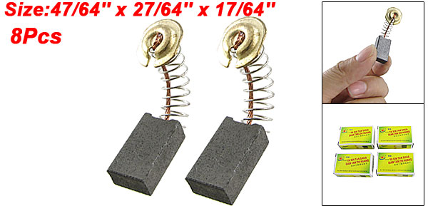 Product Name Carbon Brush Carbon Brush Size (Each) 19 x 11 x 6.9mm/47/64'' x 27/64'' x 17/64'' (L*W*T) Total Length(Approx) 50mm/2'' (When Spring Stretching) Material Carbon & Metal Color Black & Gold Tone Net Weight 30g Package Content 8 x Carbon Brush - Reviews