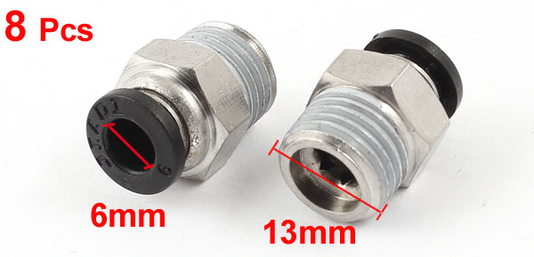 8 Pcs 6mm Hole to 1/4" PT Male Thread Straight Tube Pneumatic Quick Fittings