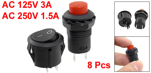 Item Name Push Button Switch Contact Type SPST Action Type Self-locking Working Voltage AC 125V 3A, 250V 1.5A Mounting Thread Diameter 12.3mm / 0.48" Button Cap Size 9 x 9mm / 0.35" x 0.35"(L*W) Terminals 2 Overall Size 3 x 15mm / 1.1" x 0.6"(L*W*H) Material Plastic, Electronic Parts Weight 18g Package Content 8 Pcs x Push Button Switch - Reviews