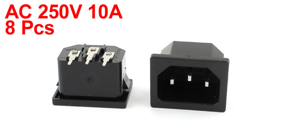 8 Pcs AC 250V 10A 3 Pins C14 Plug Panel Mount Power Inlet Socket Black