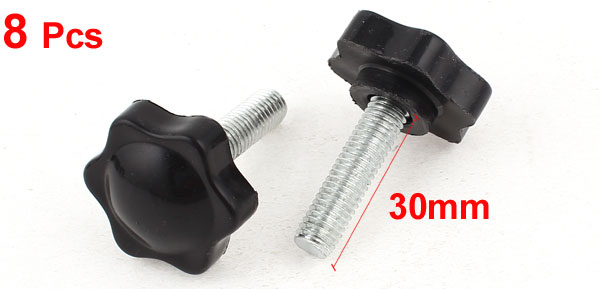 8 Pcs Black Spare Part M8 x 30mm Male Threaded Knurled Grip Star Knob