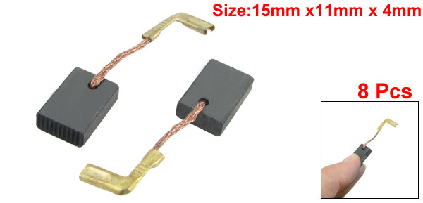 Product Name Motor Carbon Brush Fitness Generic Electric Motor Carbon Brush Size (Approx) 15 x 11 x 4mm / 19/32" x 2/5" x 5/32"(L * W * H) Total Length(Approx) 3cm/ 1.18" Net Weight 15g Package Content 8 Pcs x Motor Carbon Brush - Reviews