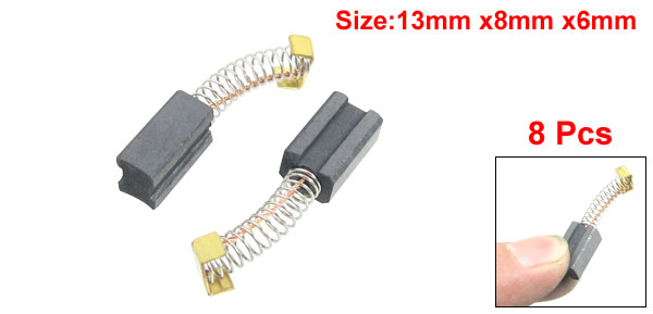 Product Name Motor Carbon Brush Fitness Generic Electric Motor Carbon Brush Size (Approx) 13 x 8 x 6mm / 33/64" x 5/16" x 15/64"(L * W * H) Total Length(Approx) 3cm/ 1.18“ Net Weight 12g Package Content 8 Pcs x Motor Carbon Brush - Reviews