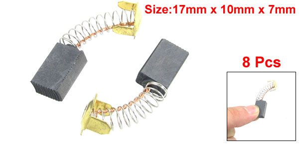Product Name Motor Carbon Brush Fitness Generic Electric Motor Carbon Brush Size (Approx) 17 x 10 x 7mm / 43/64" x 13/32" x 7/25"(L * W * H) Total Length(Approx) 4.5cm/ 1.8“ Net Weight 28g Package Content 8 Pcs x Motor Carbon Brush - Reviews