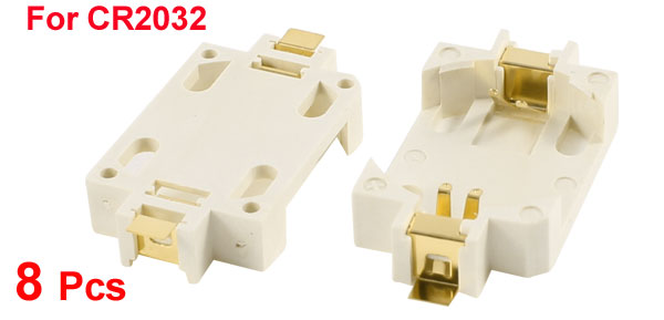 8 Pcs Off White Plastic CR2032 Cell Button Lithium Batteries Socket Holder
