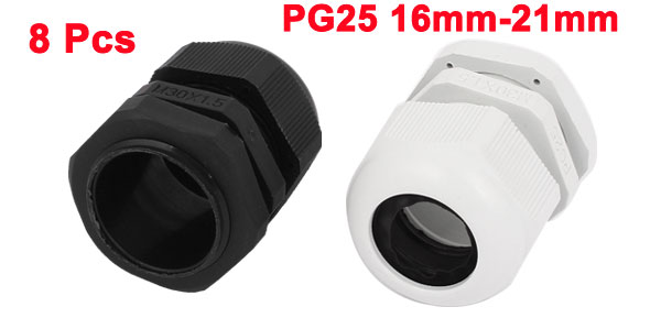 8 Pcs PG25 16mm-21mm Black White Waterproof Cable Glands Stuffing Locknut M30
