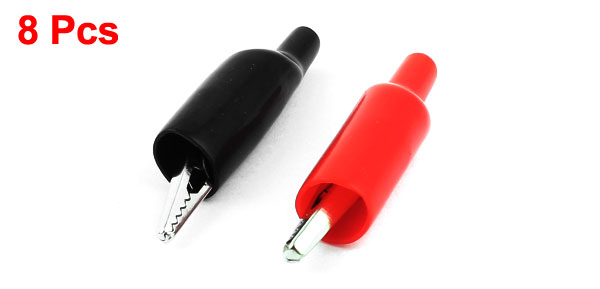 8 PCS Plastic Covered Alligator Clip Battery Test Lead Clamp Black Red