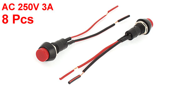 8 Pcs Red Flat Cap Momentary SPST 2 Wire Push Button Switch AC 250V 3A