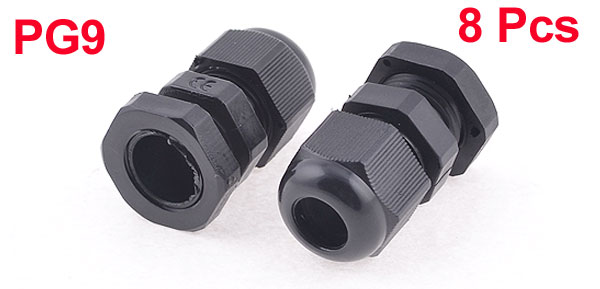 8 Pcs Waterproof PG9 Plastic Cable Glands Fasteners Black