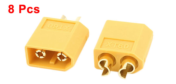 Main Color Yellow, Gold Tone Net Weight 25g Country of Manufacture CHINA Package Content 8 x XT60 Plug Connector Type XT60 Male Plug Material Metal, Plastic Total Size 22 x 16 x 8mm/0.87" x 0.6" x 0.3"(L*W*T) Hole Dia 3mm/0.12" - Reviews