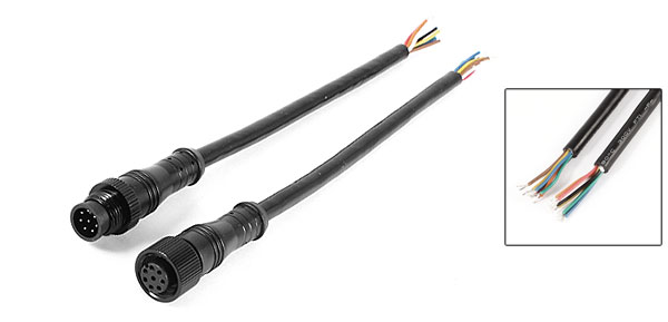 8 Pin M/F Plug Waterproof Connector Cable Black 15"