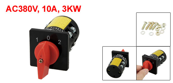 Product Name Universal Switch Model No. HZ5B-10/2 D008 Voltage, Power AC380V, 10A, 3KW Overall Size 45 x 45 x 90mm / 1.77" x 1.77" x 4.5"(L*W*H) External Material Plastic Color Red, Black Net Weight 122g Package Content 1 x Universal Switch