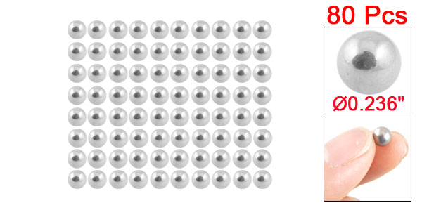 Product Name Carbon Steel Bearing Ball Quantity 80±2% Pcs Diameter 6mm/ 0.236" (15/64") Color Silver Tone Material Carbon Steel Weight 65g Package 80 Pcs x Carbon Steel Bearing Ball - Reviews