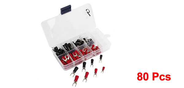 Color PVC Plastic, Metal Material Black, Red Weight 85g Package Content 80Pcs x Pre Insulated Fork Terminal Sets - Reviews