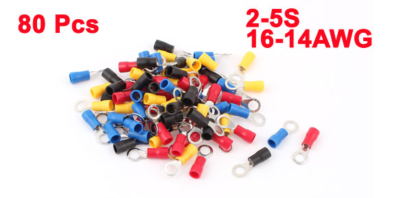 80 Pcs 2-5S 16-14AWG Wire Connector Ring Crimp Terminal Assortment Kit