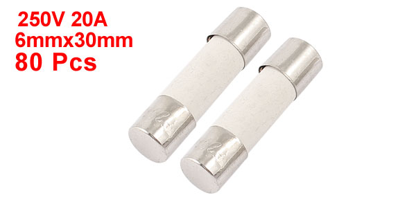 80 Pcs 250V 20A 6mmx30mm Cylindrical Ceramic Tube Fuses Link