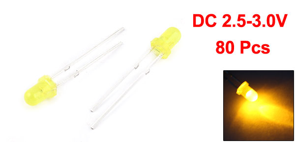 80 Pcs 2Pins 3mm Round Bright Yellow LED Bulb Light Emitting Diodes Replacements