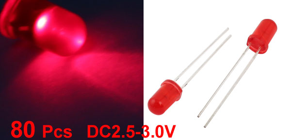Details80 Pcs 2Pins 5mm Straw Hat Bright Red LED Lamp Light Emitting Diodes DC 2.5-3.0V  Product Name Light Emitting Diode Material Metal, Plastic Emitting Light Color Red Voltage DC2.5-3.0V Head Size(Approx) 8.5 x 5mm/ 0.33" x 0.2"(L*D) Pin Size (Approx.) 0.5 x 29mm / 0.02" x 1.1" (D * Max.L)
