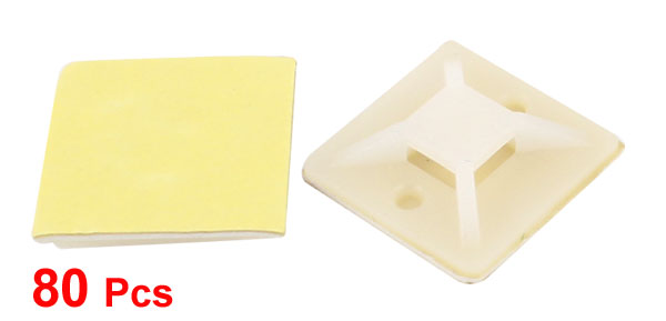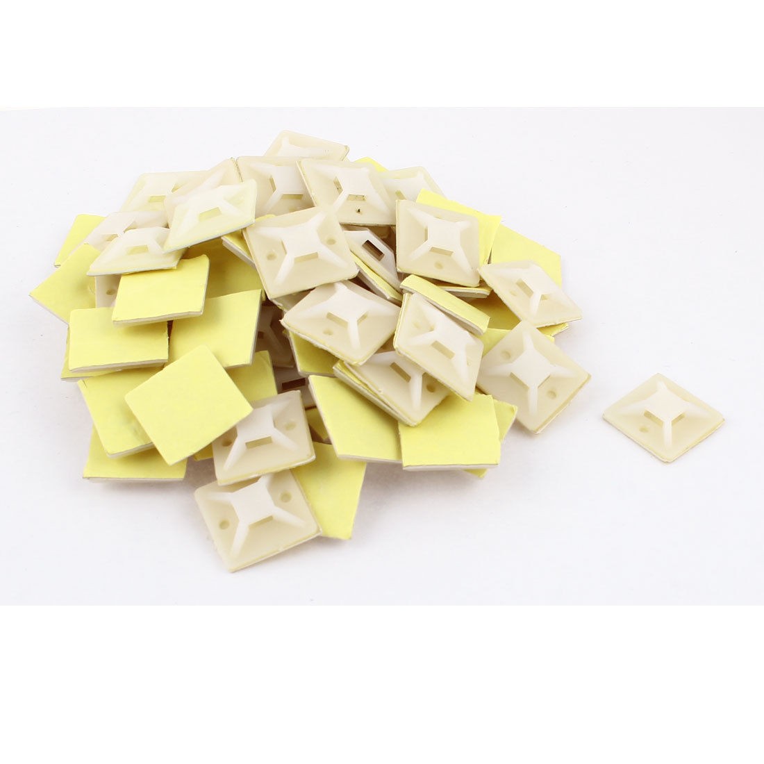 80 Pcs 30mm x 30mm Square White Plastic Self-Adhesive Fixing Wire Tie Mount Base