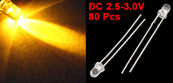 80 Pcs 3mm 2Pin Round Yellow LED Light Emitting Diode Lamp Replacement DC 2.5-3V