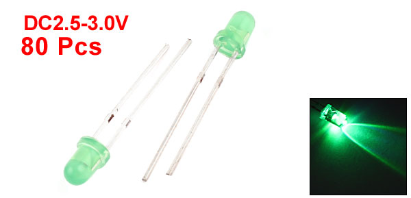 80 Pcs 3mm Diamater Straw Hat Green LED Lamp Light Emitting Diode DC 2.5-3.0V