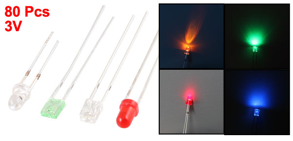 80 Pcs 3mm Head 2 Pin Yellow Red Blue Green LED Light Emitting Diode
